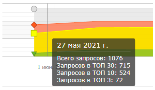 Як бачимо з графіка вище, після проведених робіт лише за 5 місяців вдалося збільшити кількість запитів у ТОП 3 на +200%.