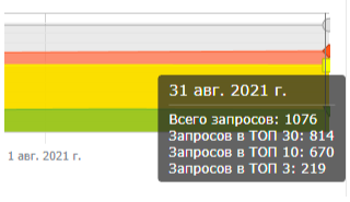 Також за період від квітня до серпня 2021р. це можна спостерігати у цифрах за кількістю запитів у топах