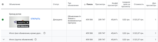 Високу ефективність продемонструвала КМС (контекстно-медійна) кампанія, де з 459 тисяч показів ми отримали 209 тисяч повноцінних, зацікавлених переглядів. Данний тип реклами допомогає будувати впізнаваність та довіру до бенду.